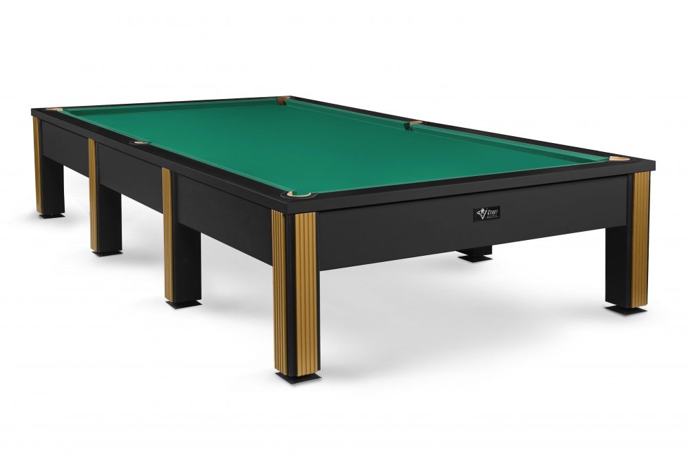 Лаконичный дизайн стола построен на мощном контрасте: матовый черный металл строгих ног и безупречная гладь игрового поля. Декор ног в серебре или золоте расставляет финальные акценты, подчеркивая статусность модели.